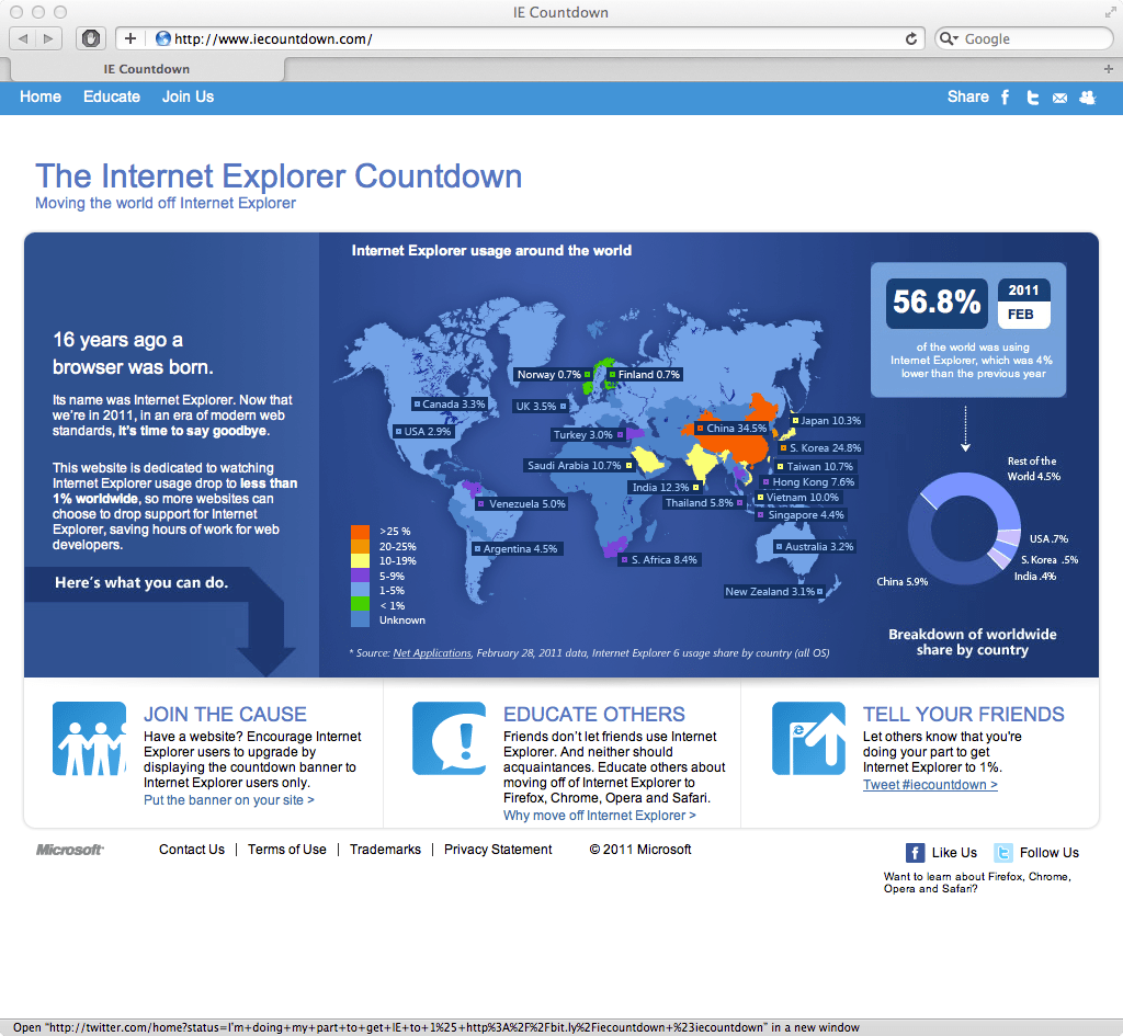 Apparently Microsoft wants you to move off of Internet Explorer 6. Here’s a screenshot of the original campaign site: