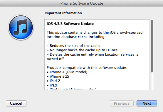 Apple releases iOS 4.3.3 and iOS 4.2.8 to address issues with Location Data.